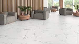 Πλακάκι πορσελανάτο, ματ, απομίμηση λευκού μαρμάρου με μαύρα νερά. Κατάλληλο για εσωτερικούς χώρους, ρεκτιφικάτο (κοπής λέιζερ), ισπανικό.