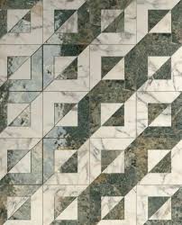 Ένα εκλεπτυσμένο, διακοσμητικό πλακάκι από πορσελάνη (gres porcellanato) της συλλογής Dimore από την Del Conca. Εμπνευσμένο από την “Dolce Vita”, συνδυάζει την ομορφιά του πράσινου amazzonite με γυαλιστερά, γεωμετρικά μοτίβα, ιδανικό για τοίχους και δάπεδα με πολυτελή αισθητική.