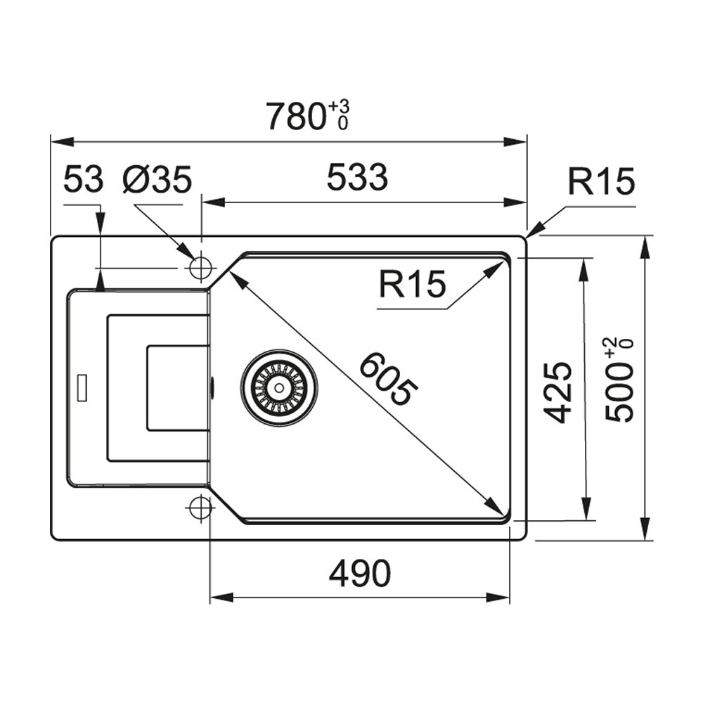 Βάση για ντουλάπι 60cm, εξωτερική διάσταση 78*50, διάσταση γούρνας 49*42,5*22, σιφόνι μονό, για ένθετη τοποθέτηση, με αυτόματη βαλβίδα.