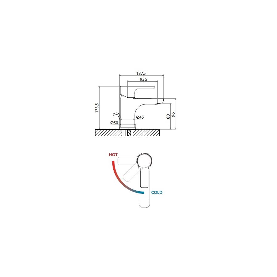 Μπαταρία νιπτήρα χαμηλού προφίλ, με αυτόματη βαλβίδα, της ιταλικής εταιρείας Teorema, 40% οικονομία νερού, 10 χρόνια εγγύηση από τον κατασκευαστή.