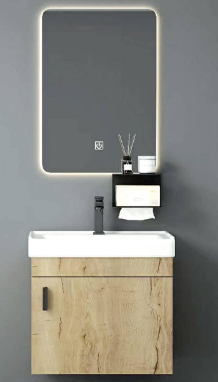 Έπιπλο μπάνιου με καθρέπτη LED(τρία χρώματα). Υλικό κατασκευής PVC. Με ντουλάπι και νιπτήρα πορσελάνινο. Καθρέπτης 40*60.