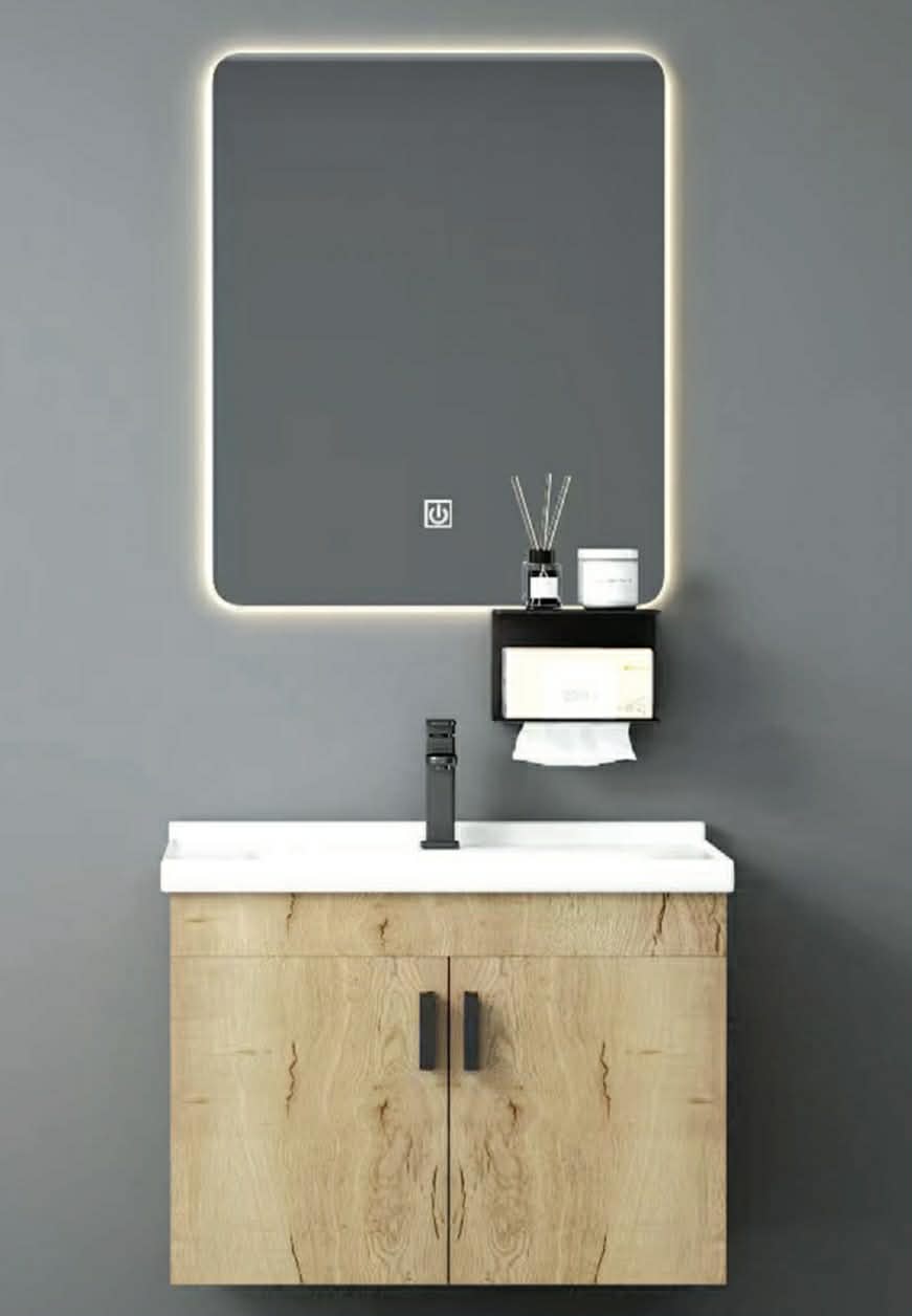 Έπιπλο μπάνιου με καθρέπτη LED(τρία χρώματα). Υλικό κατασκευής PVC. Με ντουλάπι και νιπτήρα πορσελάνινο. Καθρέπτης 80*60.