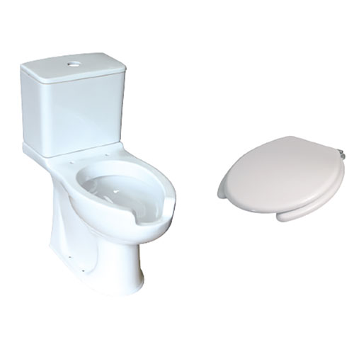 Λεκάνη χαμηλής πίεσης, σιφόνι πίσω ή κάτω. 75εκ. κέντρο 17,5εκ. Καζανάκι με μηχανισμό διπλής ροής και λευκό κάλυμμα.