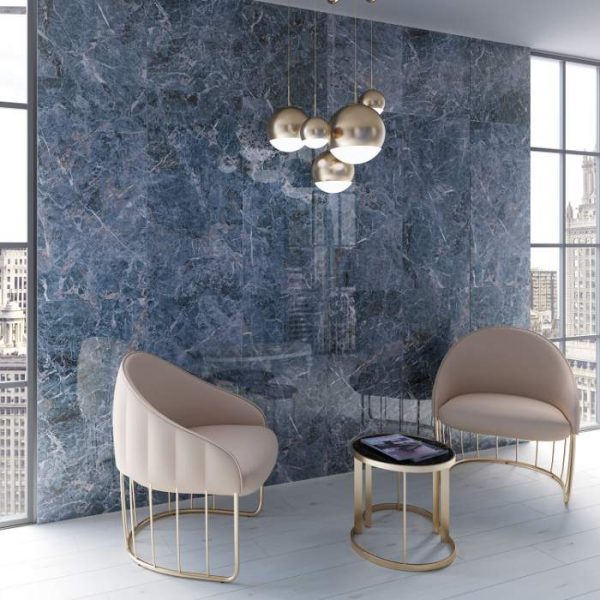 Απομίμηση μαρμάρου με ακανόνιστα νερά, σε μπλε φόντο.