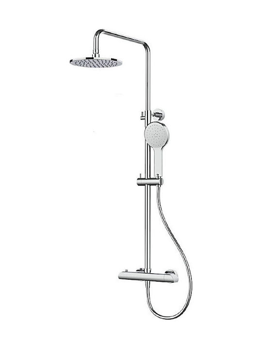 Κολώνα ντουζ, με θερμοστατική μπαταρία και ρυθμιζόμενο ύψος 79-132,5cm, κεφαλή inox SS 304 Φ20, τηλέφωνο ABS.